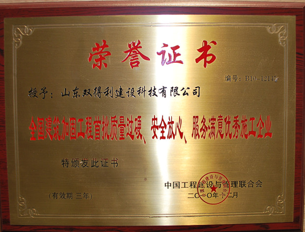 - 公司先后成為全國第一屆《工程抗震與加固改造》理事會理事、中國《工程加固》行業(yè)協(xié)會會員;被評為"全國建設(shè)系統(tǒng)重合同、守信譽(yù)、信得過"單位、"全國建筑加固工程質(zhì)量過硬、安全放心、服務(wù)滿意優(yōu)秀施工單位"及"全國政府放心、用戶滿意先進(jìn)單位"、"全國建設(shè)信用AAA級誠信企業(yè)"及 "省級守合同重信用"企業(yè),技術(shù)水平始終保持行業(yè)領(lǐng)先地位。